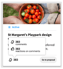 The count of reactions is shown on your tiles on the hub page, encouraging users to read comments and reactions left by their neighbours, which will encourage further participation.