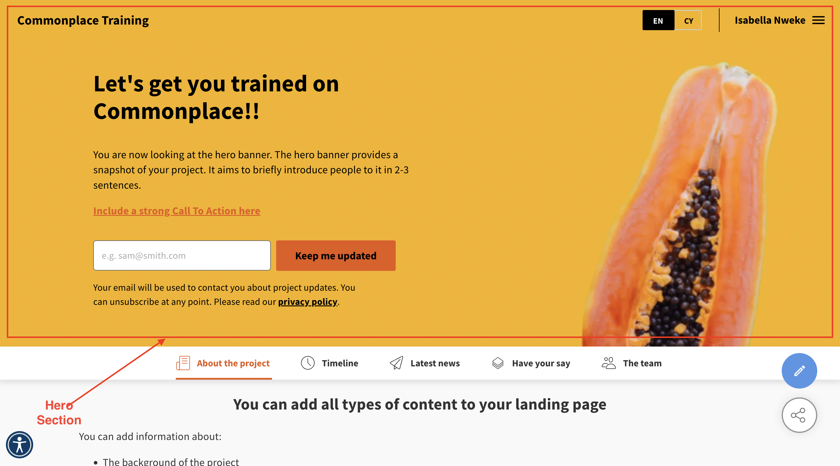 4. Hero image - using an image in the Hero is an effective way to engage the audience. If your project is about a specific local area, a recognisable landmark will be a great way to make the connection about what the project is about.