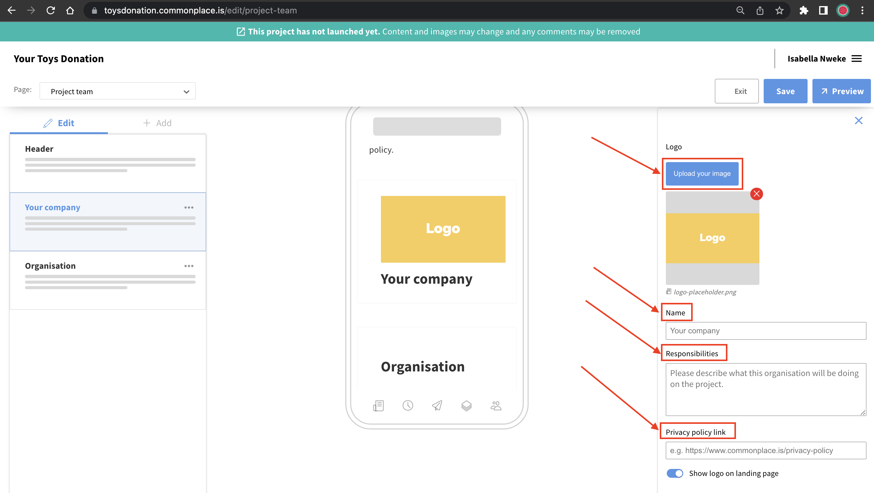 “Team” is the organisation behind your Commonplace, this can be more than one including your own organisation as well as other partners who may be involved in the project or data analysis. Under GDPR data protection rules, this is how you tell the website users who will have access to their data and for what purpose.
