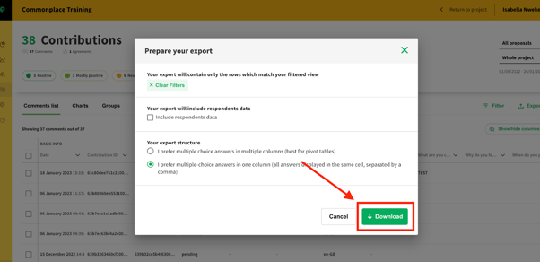 This article will explain how you can download contribution data from the dashboard for further analysis outside of Commonplace