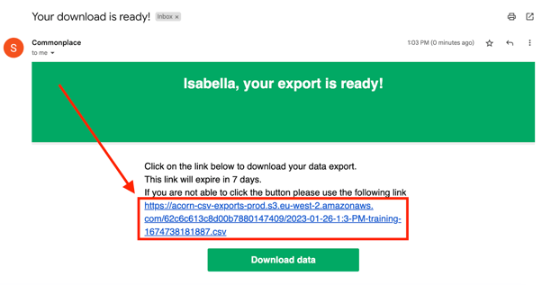 You will receive an email notification similar to the image below with a download link to download your report. Click on the link to download the offline report in CSV format.