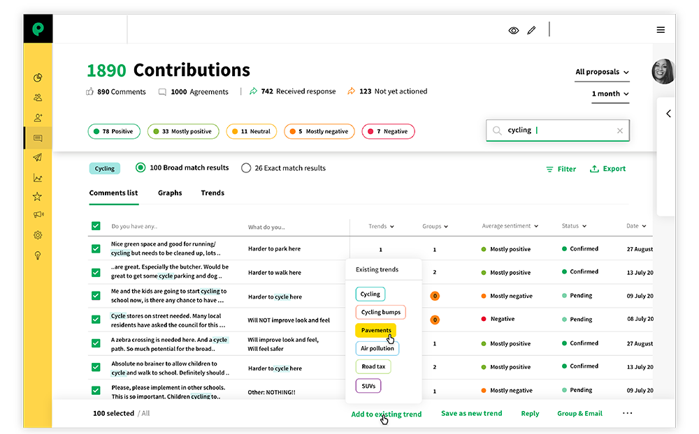 - Reply to comments directly: If commenters have opted in, then you have the option to email them directly by topic or reply privately to a single respondent. With our dashboard, you can segment comments by sentiment, demographic and even by specific terms used. You can also group them so you can send out mass emails to tackle these problems directly. Learn all about the best message practices right here.