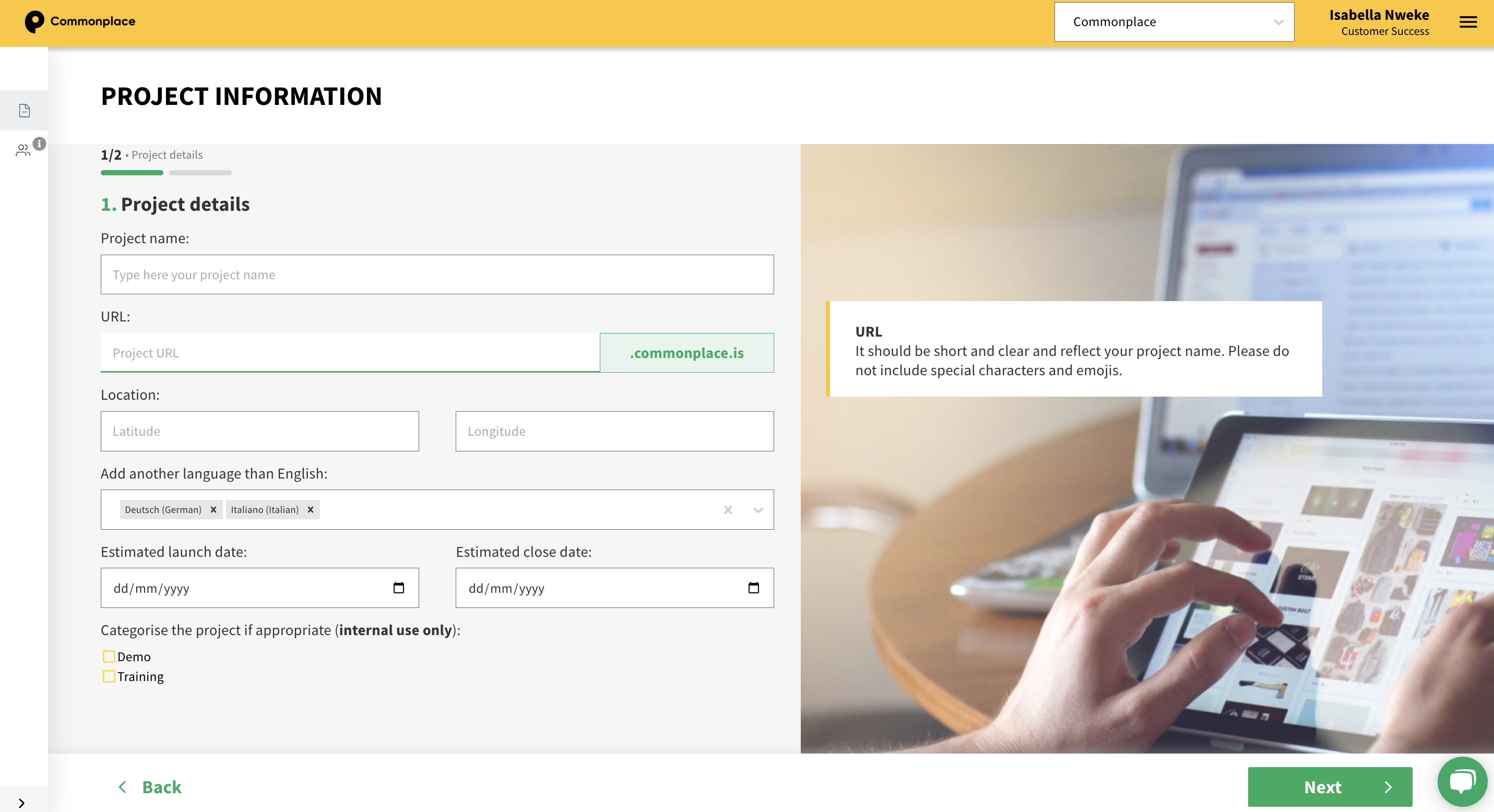 Once this step is completed, a loading screen will appear and the project will be created within 5 minutes.
